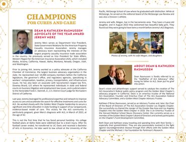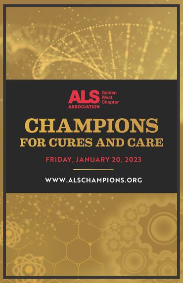 The ALS Association Golden West Chapter's Champions for Cures and Care is an annual gala that celebrates individuals and organizations whose contributions and efforts advance the Chapter's mission critical activities. In January 2023, I updated the design of the event program and graphics to match its new theme, which focused on research and care.
