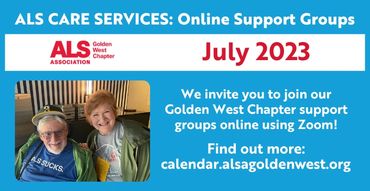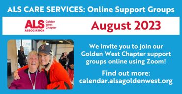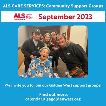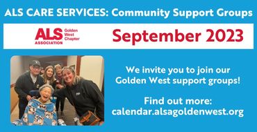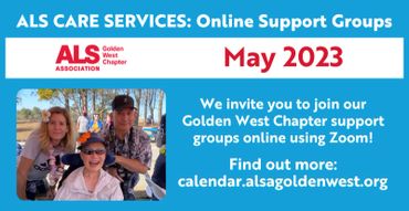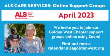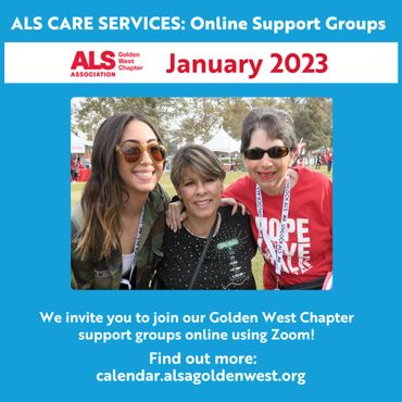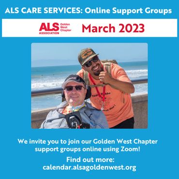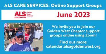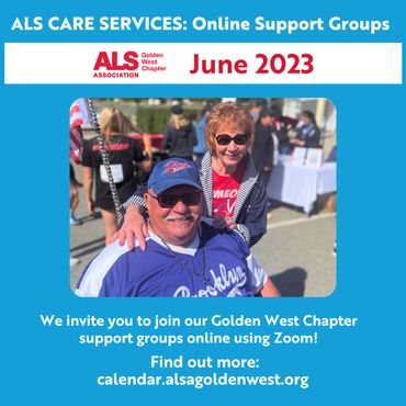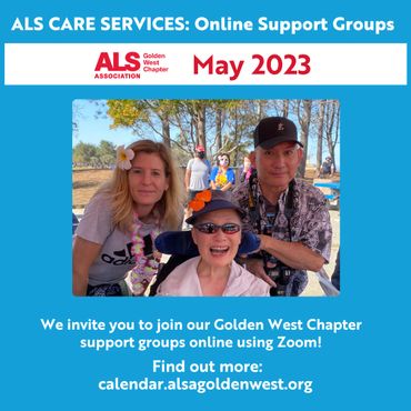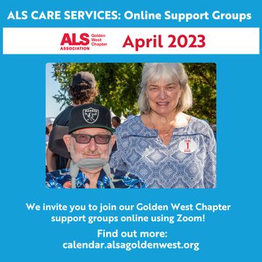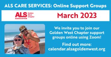 In 2022, I designed a new graphic template for the promotion of ALS Golden West's (formerly The ALS Association Golden West Chapter) monthly support groups to better align with Golden West's branding. The template was updated in 2023 to include the year. In addition, in September 2023, the text on the template changed to reflect the separation of ALS Golden West and The ALS Association.